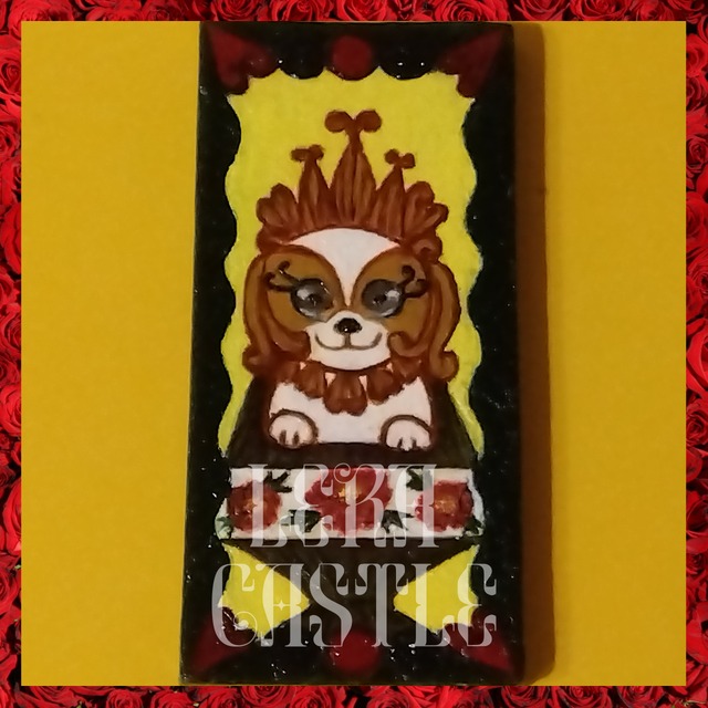 【商品説明】 Lera Castleは『地球上のゴミを少しでも減らす活動』を開始! 『社会でゴミとされている物を美しい芸術作品に仕上げました』 今回は、Lera Castleの看板犬。『獅子狗=シーズー』がモデル! シーズーは、「神の使い」「守り神』として崇められてきました。 皇族や貴族のみが飼える『神聖な犬』として愛されてきました。 裏側は、『渦巻文様』などを入れた、ミステリアスなデザイン。 縁起の良い獅子狗、あなたのおうちにも、いかがでしょうか? 色々と多忙な中、数年かけて、少しずつ描き、完成させた作品。 1点のみなので早い者勝ちですよ! 【獅子狗について】 中国語で「シーズークゥ」と読みます。 意味は「ライオン(獅子)のような犬」です。 【画材】 ・蒲鉾板 ・微香性油絵具Zephyr ・ニス 【サイズ】 横4cm✕縦8.7cm✕厚さ0.5cm
